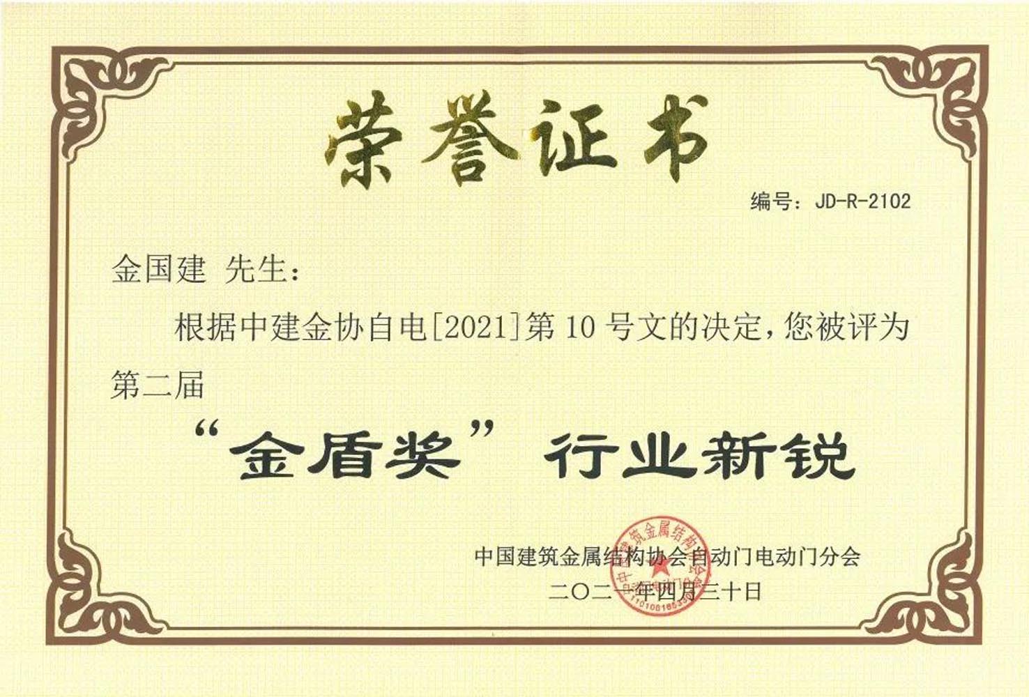 “金盾獎(jiǎng)‘行業(yè)新銳’”榮譽(yù)證書(shū)